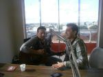 Para finalizar, a dupla fotografou, distribuiu autógrafos para fãs e participou também de entrevistas com a comunicadora Ariane na Rádio T 97.3Mhz e com o comunicador Gilberto na Rádio Capital do Papel AM 700Khz.